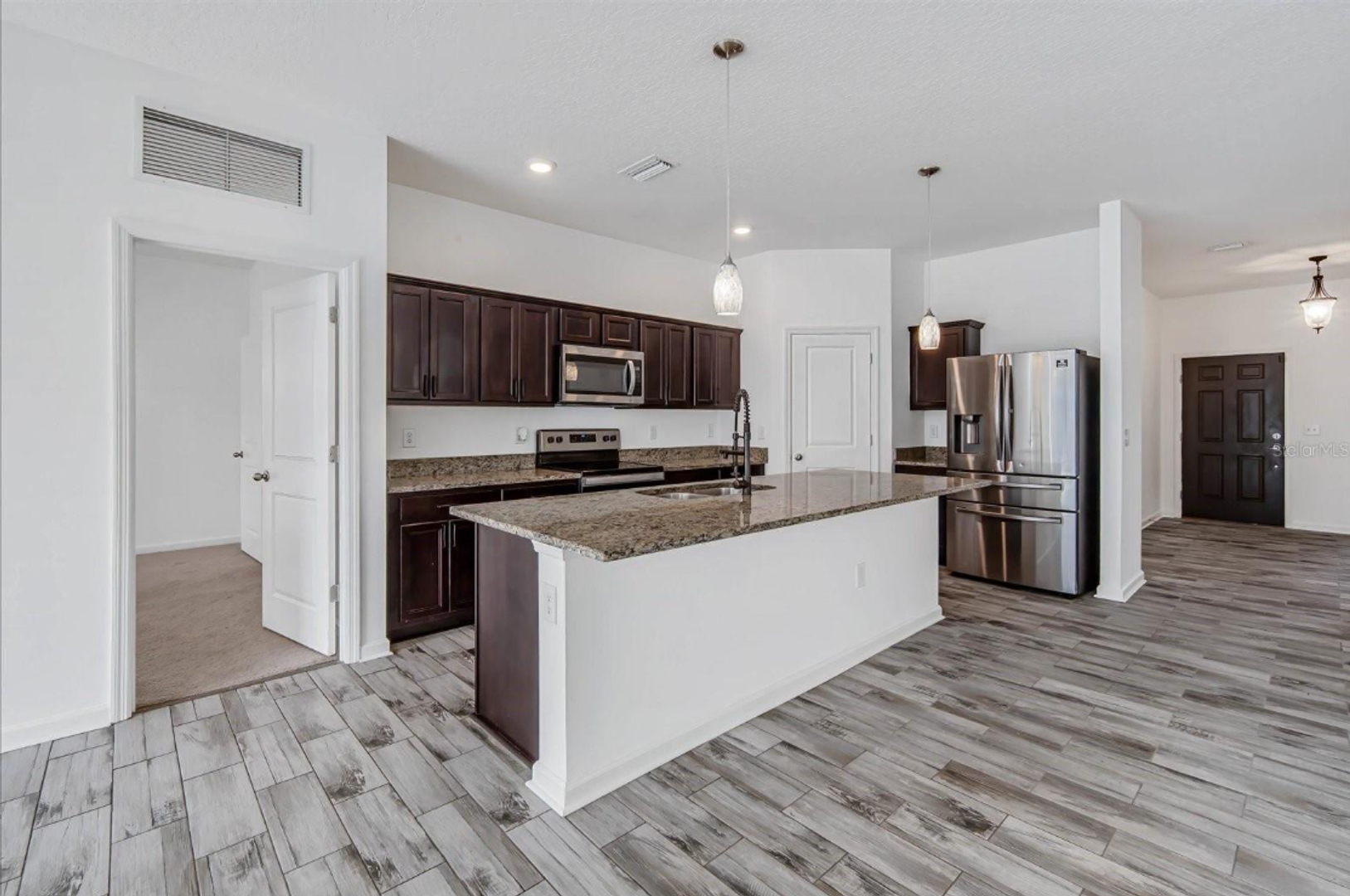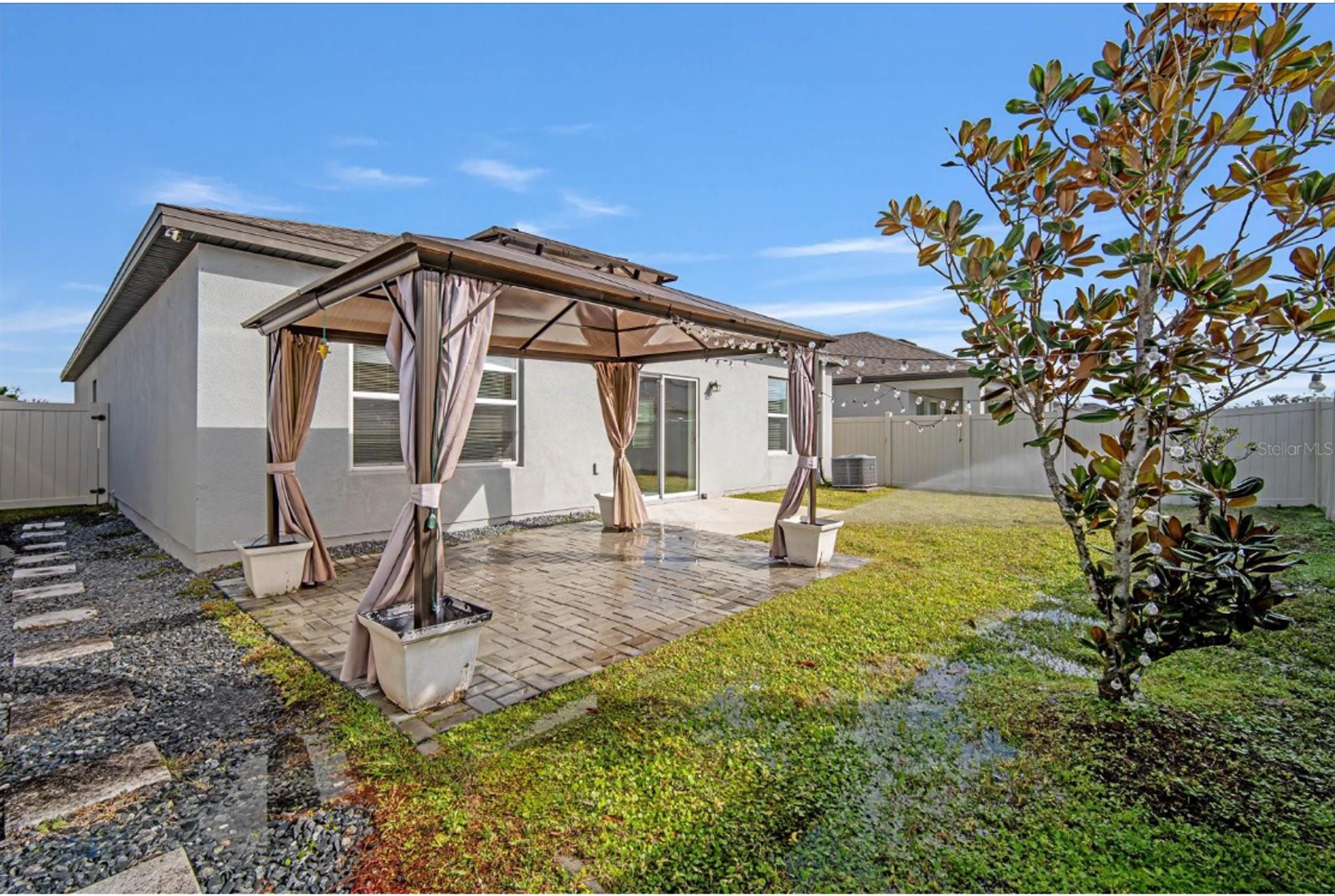 Welcome to this stunning 4-bedroom, 2-bath rental in the sought-after Riverstone community! This beautifully updated home features a modern triple-split floor plan, fresh paint, and sleek tile flooring throughout. The spacious great room flows seamlessly into a gourmet kitchen with granite countertops, rich cabinetry, a walk-in pantry, and a breakfast bar. The large primary suite offers a private en-suite bath and a walk-in closet, while the fully fenced backyard boasts an extended patio and pergola—perfect for outdoor relaxation. Residents enjoy access to resort-style pools, a playground, and a dog park. Conveniently located near downtown Lakeland with easy access to Tampa and Orlando.