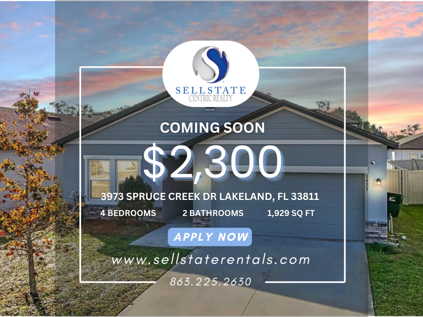 Complete our quick pre-approval to schedule your tour: sellstaterentals.com